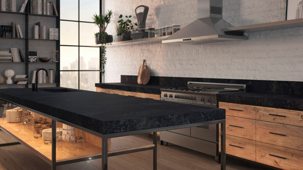 Black quartz’s rich depth makes it incredibly versatile when paired with flooring; light wood floors create a striking contrast that brightens the room and highlights the worktop’s onyx-like sheen, while medium or dark woods are perfect for creating intimate, cocoon-like kitchen spaces. Natural stone flooring can echo the quartz finish, and large porcelain or ceramic tiles in neutral greys, ivory, or even subtle geometric patterns add interest without competing with the worktop.