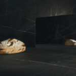 A dramatic black base, passionately animated by slivers of fine lines that strike like lightening across a stark midnight sky, in a Honed finish. Combined with inverted slabs, a vivid juxtaposed motion gains even more power.