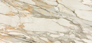 A luminous bone-white base animated by sweeping light grey veins and finer graphite outlines. An opaque layer of gold veins adds warmth and depth, creating an organic design that blends timeless elegance with contemporary flair.