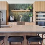 This kitchen environment provides warmth through neutral tones while offering a space for employees, at ERW, to enjoy.